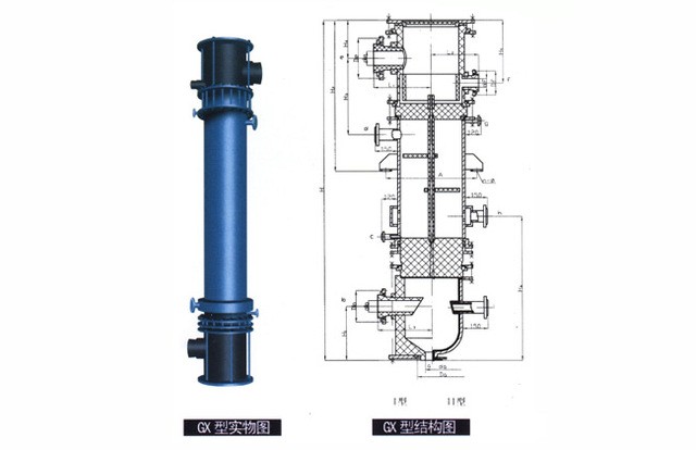 GX型系列列管式石墨降膜吸收器之吸收換熱元件為不透性石墨管,成膜條件極佳,故吸收效率高(與尾氣搭配合吸收率可達(dá)99%)生產(chǎn)強(qiáng)度大 CQ22/932X3000單管日產(chǎn)量可達(dá)0.8-1.2t33%鹽酸/天),且調(diào)節(jié)范圍大,產(chǎn)品不受污染,純度好,主要用于吸收Hcl氣制鹽酸。也可處理含Hcl、S02、NH2, HF、P2O5,H2S等氣體之尾氣,既回收某些成分 ,制取副產(chǎn)品減少或消除環(huán)境污染。本設(shè) 備之氣